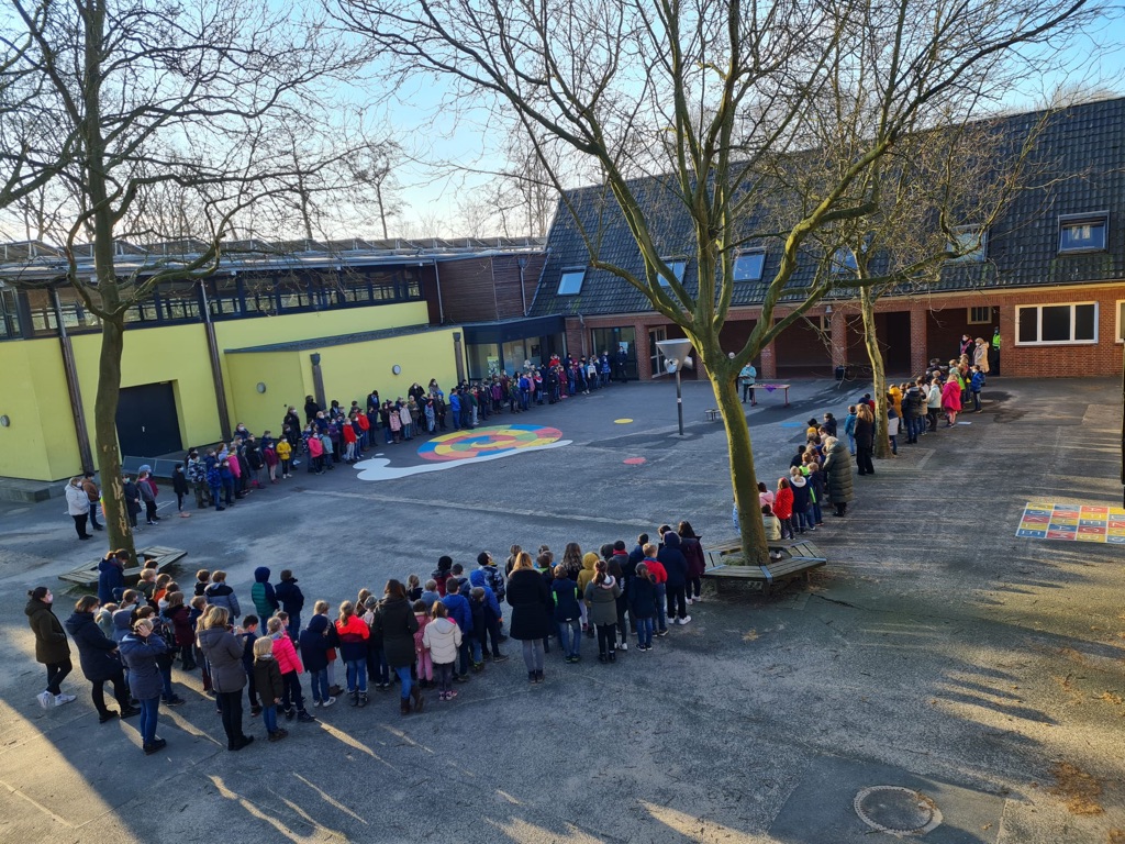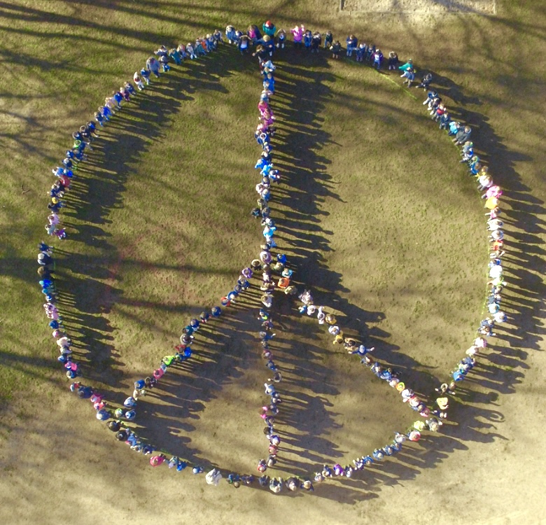 Alle Kinder, Lehrerinnen und Mitarbeiter der LGS setzten heute auf dem Schulhof ein Zeichen für den Frieden. Während wir dort standen, flogen 2 weiße Tauben über uns hinweg. Es war ein sehr schönes Erlebnis!