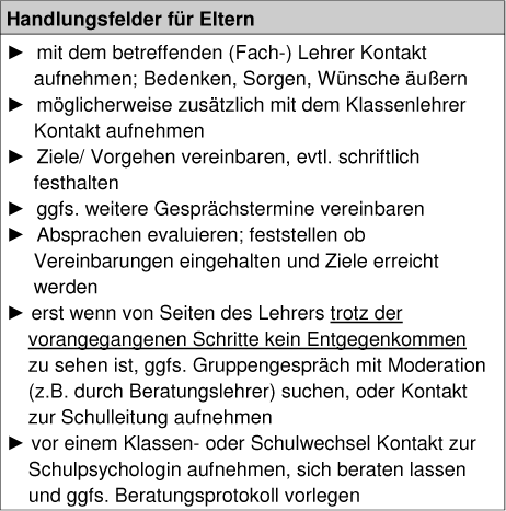Leitfaden zum Vorgehen bei Differenzen zwischen Eltern und Lehrern