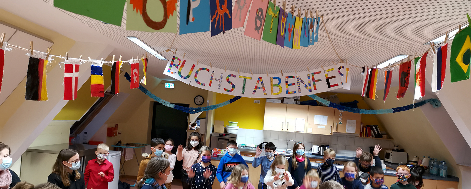 Im Anschluss daran werden die Schulneulinge in der Schule empfangen, mit einem kleinen Empfangsprogramm von allen Kindern der LGS erfreut und von den Klassenleitungen in Empfang genommen und in die Klassenräume geleitet.